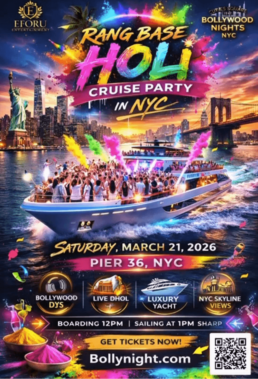 As the spring air begins to warm and the world blossoms into vibrant colors, E4U Events has been painting cities in hues of joy, unity, and celebration. This Holi season, we’ve already hosted two spectacular events that brought together nearly 3,000 people, each eager to partake in the festivity of colors. Our first event, set against the moving backdrop of New York City’s waters, saw the Holi spirit come alive on a cruise, while the second unfolded in the heart of OAK Road, NJ, with the electrifying performance of Indian singer Kanika Kapoor.